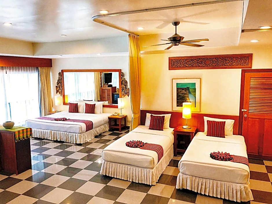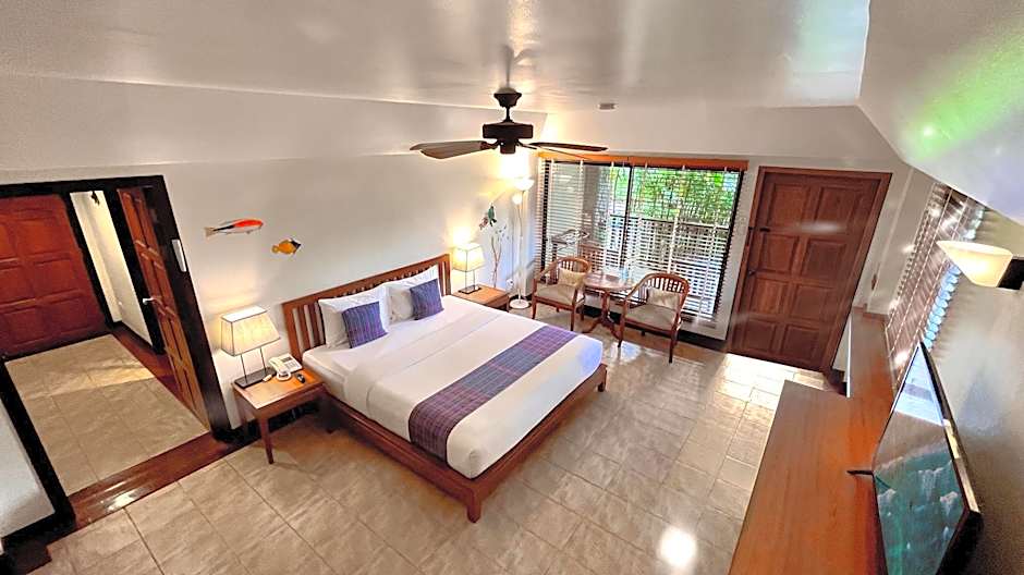 A wide range of room types is available, from Deluxe Jacuzzi and Deluxe Villa to beachfront and family-oriented suites, with options that accommodate different group sizes and bed configurations. Payment is flexible, with cash accepted and Visa, Mastercard, or UnionPay welcomed.